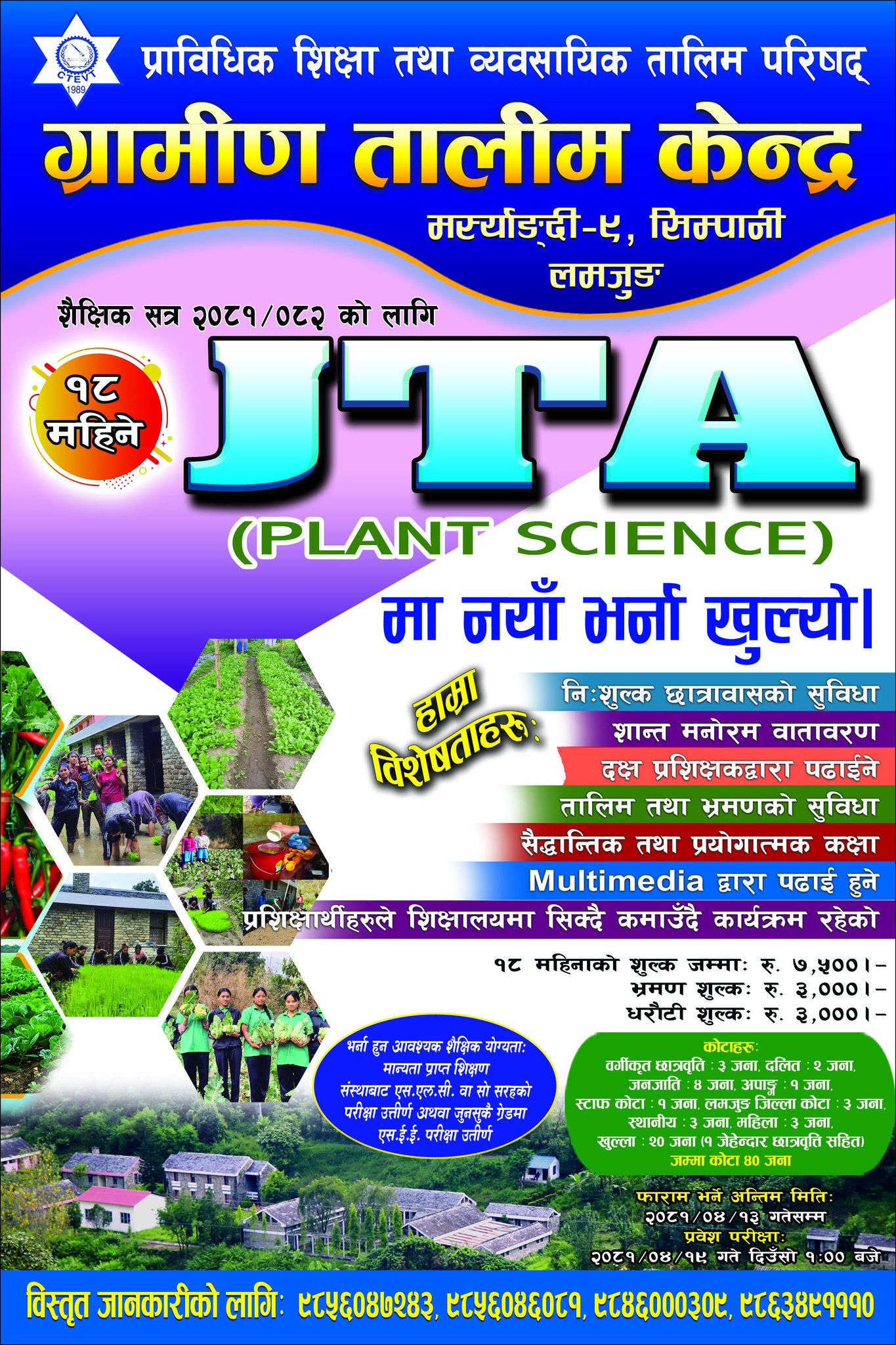 यो लमजुङ जिल्लाको सदरमुकामा वेशीशहरवाट ५ किलोमिटर उत्तर मस्र्याङदी गाउपालीका सिम्पानी वडा न. ९ मस्र्याङदी नदीको किनारमा अवश्थित छ । निम्न र मध्यम स्तरको सिपयुत्त जनशत्ती तयार र्गनको लागी विभिन्न प्राविधिक शिक्षायलहरु प्रा. शि. तथा व्या. ता. परिषदले स्थापना गरे पश्चात यतिले मात्र राष्ट्र समुदायको विकास सम्भव हुदैन भन्ने ठानी गरिव पिछाडिएका छेउ लागेका मानिसहरुको जिवनस्तर सुधार ल्याउनको लागी व्यावसायिक तालिमका मार्फत दिगो सामुदायिक विकास प्रकृयाको स्थापना गर्ने उद्देश्यले धेरै चिन्तन र मनन पछि आवश्यकता अध्यायनको आधारमा तालिम संचालन गर्ने नितीले व्यासायिक तालिम र सामुदायिक माहाशाखाको स्थापना गरि त्यसै अन्र्गत ग्रामिण सिपयुत्त जनशक्ती उत्पदन गर्ने उद्देश्यले नेपालमा नै नमुनाको लागी २ वटा तालिम केन्द्र लमुजुङ र तनंहुको स्थापना गरिएको हो । यसैलाई बिस्तारै बृद्धि गरी प्रि -डिप्लोमा र डिप्लोमा संचालन गरी प्राबिधिक शिक्षालाइ उच्चस्तर हासिल गर्न हौसाला गर्ने प्रेरणा मिलोस् भन्ने उदेश्यले संन्चालन गरीएको ।
